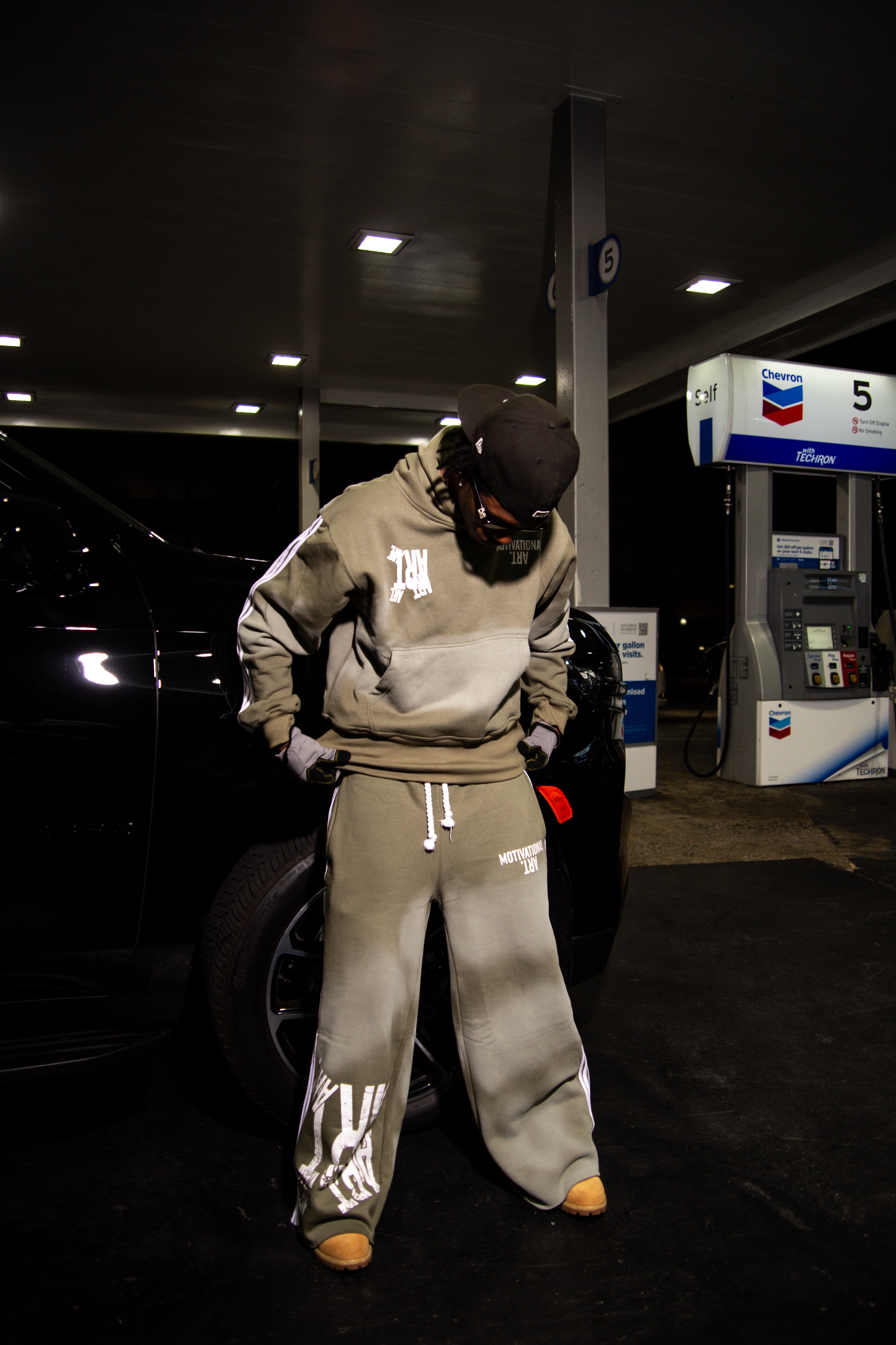 Stay grounded yet dynamic with our Moss ART. Hoodie. The oversized flare-bottom pants feature a thick waistband and signature four-line drawstrings for a secure yet stylish fit. Paired with the high-pocket hoodie, this earthy olive set combines comfort and utility, bringing an effortlessly cool vibe to your wardrobe.